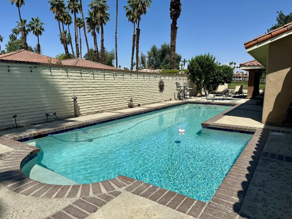 Welcome to your Hacienda in the Desert! This charming 30-plan features 2 bedrooms plus a den (complete with a sofa bed), a side yard, and a PRIVATE pool and spa. Enjoy updated kitchen appliances and newer beds that perfectly complement the beautiful Spanish architecture of this vacation residence. The west-facing side yard offers abundant sunlight, while the north-facing back patio boasts two lovely shade trees and scenic views of the golf course. Don't miss the chance to make this unique property your perfect Desert Retreat for the season!