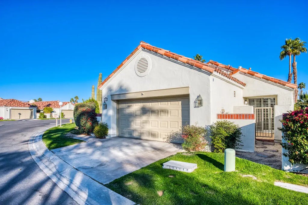 Desert Living is waiting for you in this two-bedroom, three bath detached home. An entertainer's dream yard on a premium lot creates a private Oasis with a saltwater pool/spa, an outdoor bar, and an impressive Saguaro Cacti framed by distant mountain views! It comes fully furnished and boasts paid off SOLAR in the highly desirable Desert Breezes gated community! This home features 2 Primary Suites each with a private bathroom and a private patio and are ideally located on opposite ends of the home. There is an additional half bathroom just off of the living room for guests. This Mediterranean style home features a spacious and open floorplan with vaulted ceilings, plantation shutters, and gorgeous Saltillo tile floors throughout the main living spaces! The updated kitchen has granite counters, wood cabinetry, stainless steel appliances, and breakfast bar seating area. The kitchen opens to the dining area and flows into the living room with fireplace, and slider to the private yard. The home backs to one of the many greenbelts in the community. An attached 2-Car Garage with EV charger provides easy access and convenience! The seller states most of the year no monthly electric bill and very low in the summer. New pool equipment (2024) and rebuilt A/C (2024) Residents get to enjoy many swimming pools, pickleball, spas, clubhouse area, tennis courts, and greenbelts. LOW HOA'S! Conveniently located not far from shopping, dining, golf, and more! Schedule a private tour today!