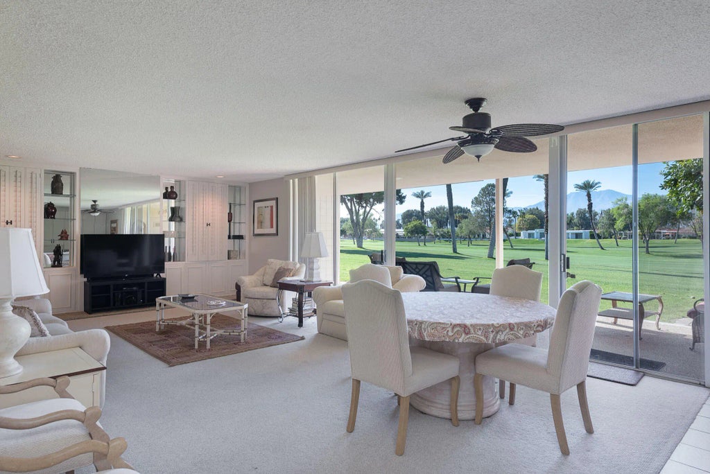 ***AVAILABLE 4/1/2025***Darling 2/2 Condo (Unit # 23) with unobstructed views of the southern mountains and the 1st & 18th fairways of the legendary Bob Hope Classic Course in private, member-owned Bermuda Dunes Country Club... Enclosed front and back patios. Master suite has built-ins, dual wash basins. Living/dining room combo with amazing views you don't want to miss out on!. Kitchen complete with breakfast bar and convenient desk. Leaded glass and wood front door. Washer dryer unit is located in the cart garage area adjacent to the spacious patio. Citrus trees to enjoy fresh squeezed juice every morning. Call now to book your stay. 30 day minimum.