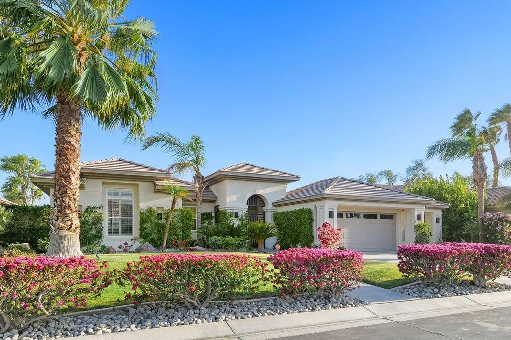 Enjoy stunning south-facing mountain views from this beautifully maintained home in Mira Vista. Thoughtfully cared for, this residence features three spacious bedrooms, three and a half bathrooms, plus a versatile den. Two guest bedrooms are separated by a media room, offering a private and comfortable retreat for visitors. Step outside to your own desert oasis—complete with a sparkling pool, relaxing jacuzzi, and stylish patio furniture—perfect for taking in the breathtaking sunset views.