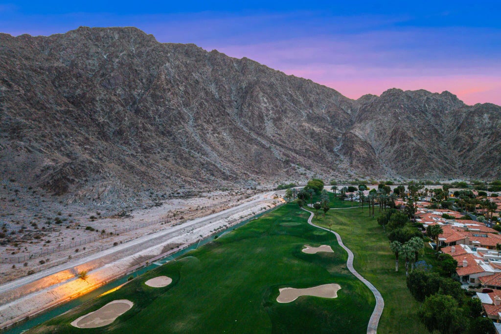 LOCATION, LOCATION, LOCATION! Western panoramic views of PGA West Palmer Private Golf Course #14 with no houses between you and night-lit Santa Rosa Mountains. Enter through the private courtyard gate and enjoy the lush landscaping and the flagstone walkway to this popular Legend 10 floor plan that features 2272 sq. ft of living space with three en-suite bedrooms, two with dual vanities, a powder room for your guests, an open living area with a Bar and stacked stone fireplace for those cool mornings/evenings. The remodeled kitchen features newer cabinetry, granite slab countertops, an island, stainless appliances, and a five-burner gas cooktop. The wall between the kitchen and living area has been moved back for an open feeling, and a breakfast bar has been installed. This condo needs no updating with the recently installed wood-looking tile flooring throughout and granite/tile in all four baths. The rear patio features spectacular views during those peaceful mornings and evenings, plenty of seating on the flagstone surface, and a gas-built-in BBQ. The spacious 2-car plus golf cart garage features cabinetry allowing plenty of storage. Offered furnished per the written inventory. PGA West features 3 Private and 3 Public courses, tennis, pickleball, three clubhouses, restaurants, and more. HOAs include building maintenance, complete landscaping, irrigation water/equipment, exterior paint, roof, cable, internet, trash, and 24-hour guarded gated security