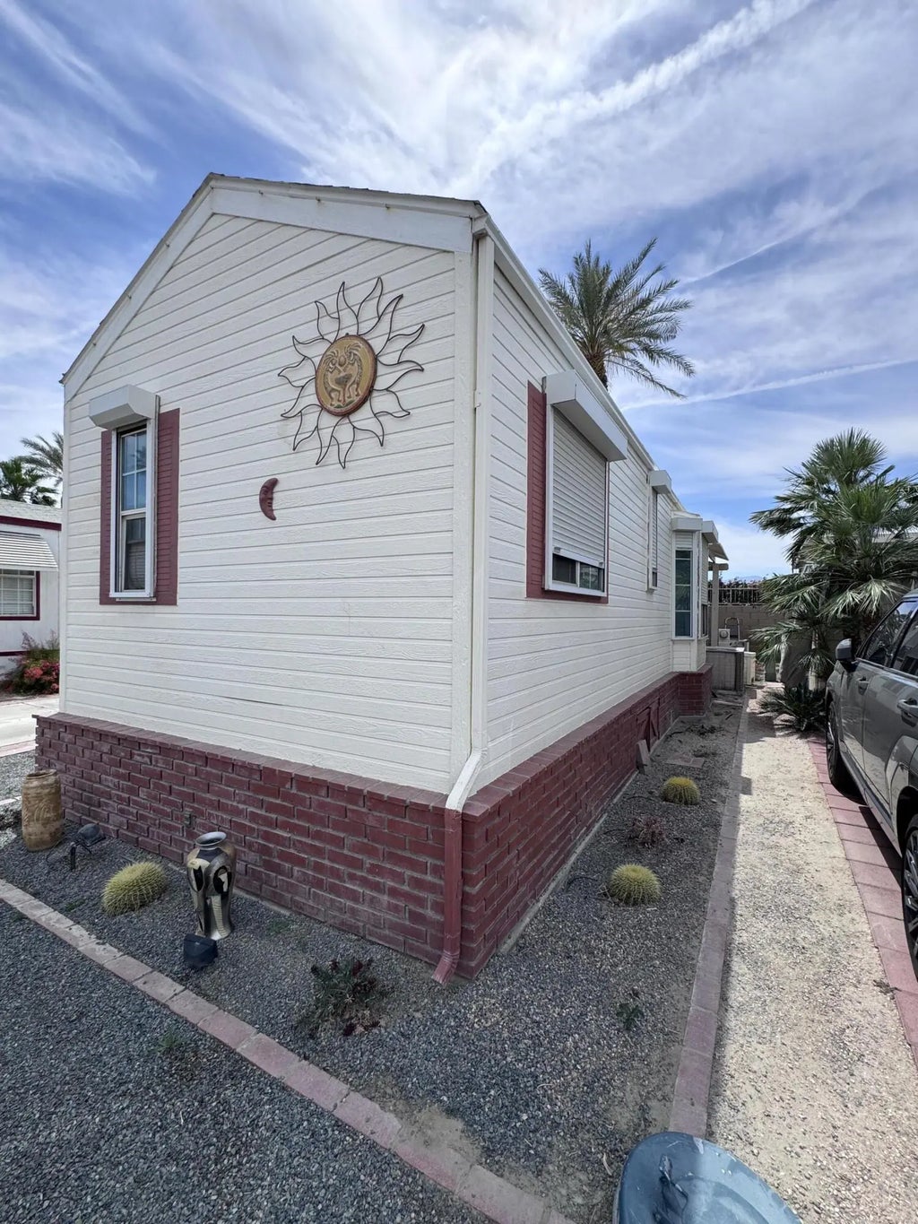 Located in the beautiful Desert Aire resort. Desert Aire is an over 55, pet free, 9 month park. Desert Aire does not permit full time residency. This park is primarily used by snow birds looking to spend the winters in our warmer climate. This 1993 park model is located on the south wall with lots of potential. Just steps from one of the bathrooms / laundry / pool areas. This is a great park model and priced to sell. This park model features high ceilings with an open floor plan and lots of natural light. The kitchen is open and very functional and features a dishwasher. New laminate flooring has been installed throughout the park model for easy maintenance. All of the furniture, bedding and kitchenware is included in the price and is ready to move in. The outside features lots of upgrades with a large storage shed, and huge covered patios. The patios provide lots of privacy and have two large entertaining areas complete with wet bar. You will enjoy entertaining this great space. There is custom red brick skirting around the entire park model.