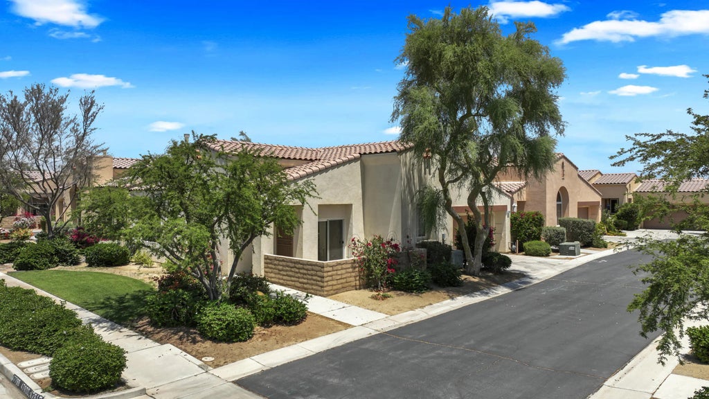 Wellcome! This 3-bedroom, 2-bath home features a spacious open floor plan with vaulted ceilings and is ideally situated on a desirable corner lot. Enjoy southwest-facing exposure from the inviting front courtyard—perfect for capturing afternoon sun and mountain views. The living area offers a cozy fireplace, while the kitchen is designed with pull-out drawers for added convenience. The primary suite includes a large walk-in closet, dual vanities, and a walk-in shower. Two additional guest bedrooms, a full guest bath, and indoor laundry provide comfortable everyday living. Additional highlights include a newer AC and heating system, ensuring year-round comfort. Located in the desirable Watercolors 55+ community in the heart of the Desert, residents enjoy low HOA fees, a community pool and spa, and a clubhouse/meeting room. Conveniently close to shopping, dining, parks, and healthcare services. Watercolors is an income-restricted community. Buyer must occupy the property as a primary residence—no rentals, no cash purchases, and no investor buyers permitted. Financing must be secured through a lender familiar with the City of La Quinta Housing Authority program. This program includes a $103,000 silent second trust deed with the La Quinta Housing Authority (Buyer must be approved for $403k but you do not make payments on the silent second. So monthly payments are based on the $299k). Buyer must occupy the home as a primary residence—no rentals, no cash purchases, and no investors allowed. Buyers must meet income guidelines based on household size: 1 person 62,651 - 87,300: 2 people 71,601 - 99,750: 3 people 80,551 - 112,250: 4 people 89,501 - 124,700.