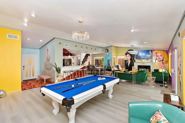 Inside, guests are welcomed via a red carpet entrance that sets the stage for the unforgettable experience that awaits. Walls adorned with hand-painted murals celebrating the women of Rock 'n Roll like Beyoncé, Cher, Miley Cyrus, Jennifer Lopez & Britney Spears to name a few to create a visually stunning, immersive experience that generates consistent 5-star reviews and strong repeat bookings. There is simply no other property like it in the market.