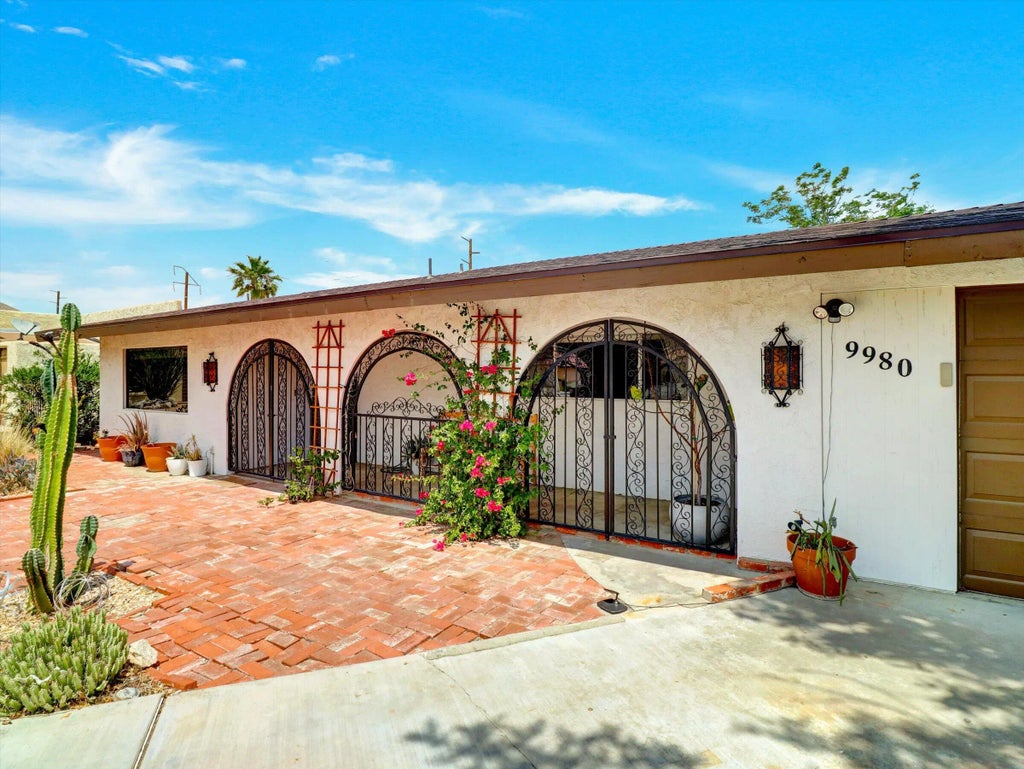 Mission Lakes Country Club...This charming 2-bedroom, 2-bath hacienda inspired home offers the perfect blend of comfort, leisure, and scenic beauty! Ideal retreat or full-time residence. Live out your GOLF dreams with unlimited golf and unlimited leisure. Step outside and experience your own slice of paradise with a backyard perfect for stargazing, surrounded by a variety of mature citrus and fruit trees. Inside, the home offers bright living spaces, a functional layout, and peaceful views of the desert landscape. Live the resort lifestyle on your terms with unlimited golf (with ownership, per HOA terms), a Ted Robinson-designed championship golf course, resort-style pool, saltwater spas, a world-class fitness center, tennis courts, and so much more. Entertaining guests, enjoying a quiet morning under the sun, or pursuing an active lifestyle, Mission Lakes offers endless possibilities.