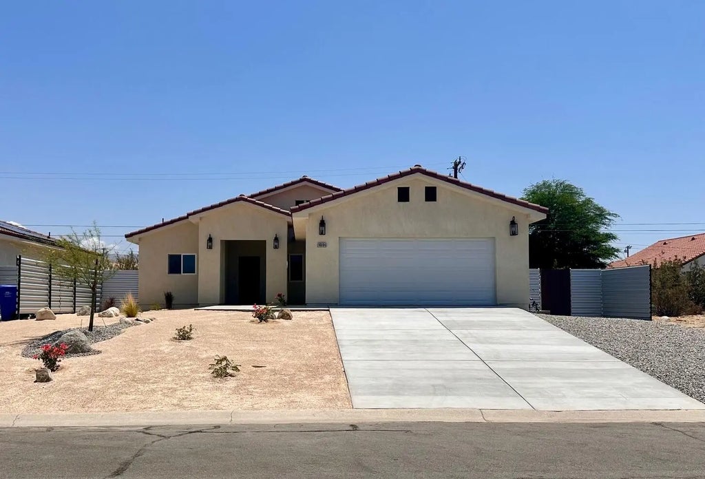 Discover your brand-new sanctuary in Desert Hot Springs. This stunning 4-bedroom, 2-bathroom home offers an inviting open-concept layout designed for modern living. The kitchen, boasts sleek quartz countertops, soft-close cabinets and drawers, and brand-new stainless steel appliances. You'll find beautiful flooring throughout the entire property, with elegant tile flooring in the bathrooms for durability and style. The primary bedroom is a true retreat, featuring a spacious walk-in closet and an en-suite bathroom with a dual vanity and a generous walk-in shower. All bedrooms are thoughtfully equipped with ceiling fans for year-round comfort. For added convenience, there's an indoor laundry room. Embrace sustainable living with a paid-for solar system, designed to reduce your energy costs. The front yard features desert landscaping for easy maintenance, while the backyard is a blank canvas, ready for your personal touch to create the outdoor space of your dreams. Enjoy the convenience of being just a short drive to vibrant downtown Palm Springs, with easy freeway access to all surrounding desert cities and the breathtaking Joshua Tree National Park.