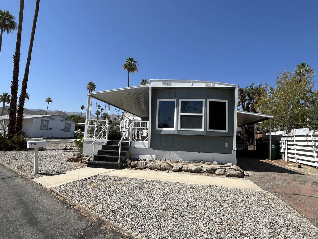 Great opportunity, and with potential. Back to the market!! Manufacture Home located on desirable area; the community offers a lot of amenities available to enjoy!! Feel free to visit the community website to find more information! This charming mobile home features one spacious bedroom and one full bathroom. The oversized bedroom can easily be divided to create a second bedroom or home office, with direct access to a large, fenced backyard—perfect for privacy, entertaining, or relaxation. A convenient shed and private parking space are included. Enjoy the shade and comfort of the Aluma Wood-covered carport and unwind on the inviting front porch while watching the sunrise or soaking in peaceful desert sunsets. Located in a well-maintained community that offers resort-style amenities including a pool and spa, RV and boat parking, a fitness room, barbecues, billboards, and more—perfect for active and social lifestyles. Just minutes from El Paseo, Westfield Mall, top-rated golf courses, fine dining, and entertainment, this cozy home offers both comfort and convenience in one ideal package. ....FIRST: apply at the management office to be approved as residence, before submitting an offer.