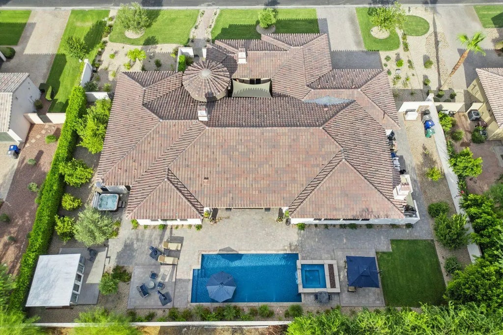 Introducing a rare opportunity to own an upscale Italian Country Estate in the prestigious community of Stonefield Estates. This luxurious 5Bed/5Bath 4,868 sq . home with a 2-room casita suite sits on a half-acre lot. Designed for refined desert living, this well-appointed home features porcelain tile floors and dramatic natural light throughout. From the moment you walk through the custom wrought-iron entry gate and rotunda, the home's elegance and thoughtful design for entertaining unfold. The formal living room/dining room features 14' ceilings with wood beams, large fireplace and custom built-in display cabinets. The gourmet chef's kitchen has a 48'' Sub-Zero, 48'' Wolf range & built-in microwave, and Bosch dishwasher. It features European maple cabinetry, an oversized center island with seating for 6+ persons, quartz counters, eating area and a huge walk-in pantry. It flows into the spacious Family Room with fireplace and bar - perfect for entertaining. The expansive primary suite with built-ins and stepped ceilings provides mountain views and access to the outdoor entertainment area. The spa quality primary bath features dual vanities, marble counters, soaking tub, tiled shower, and custom closet built-ins. The main house includes two additional ensuite guest rooms, an additional bedroom (being used as an office), and a fully renovated powder room. The separate 2-room Casita features a living area with fully renovated kitchenette, bedroom, walk-in closet, full bathroom, 2-sided fireplace, and ceiling fans. It offers privacy and comfort for visitors and/or caregivers with separate entrance from the main house. The private Atrium between the main house and casita features a beautiful private dining area. The backyard oasis is equally impressive and includes a saltwater pool & spa, and a sitting area with a large firepit. The covered loggia features a built-in grill, commercial hood, ceiling fans, TV, and large seating & dining areas with retractable awnings. This fully renovated landscaped property includes a new irrigation system with mature citrus and pomegranate trees. A pool house with 220v power is ready for a mini-split A/C. Upgrades are too many to list, but include a 26kw Generac whole-house generator, whole-house water filtration with reverse osmosis system, ADT security system with cameras, and custom motorized window treatments throughout. This home also includes dual-zone A/C with add'l separate units for the Casita and the four-car garage