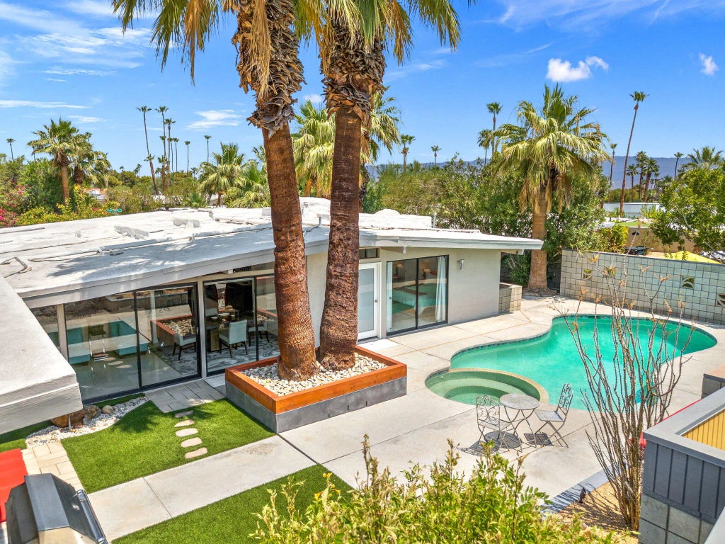 MODERNISM lives in Silver Spur Ranch! Thoughtfully updated and the essence preserved, this MCM desert retreat is a total charmer. Enchanting courtyard calls to you and sets the tone for the architectural and design elements that make this one so unique. Dramatic rooflines and matching sets of towering twin palms, front and back. Inside, the all-white open living space exudes the peace and order of a bygone era! Clerestory windows, expansive beams and full height sliding glass doors are classic design elements that connect the house to nature. (Features commonly used by Walter S. White and William Krisel) 3 bedrooms and 3 baths offer comfort and private spaces. Thoughtfully updated and maintained, this is a fine example of the high artistic values and classic Mid Century style designed to celebrate living in the desert. Rest, restore and heal here! The OWL House is recognized as Historic Site #9 by the City of Palm Desert and listed in 'Historic Landmarks' by the Historical Society. Please see HSPD.org