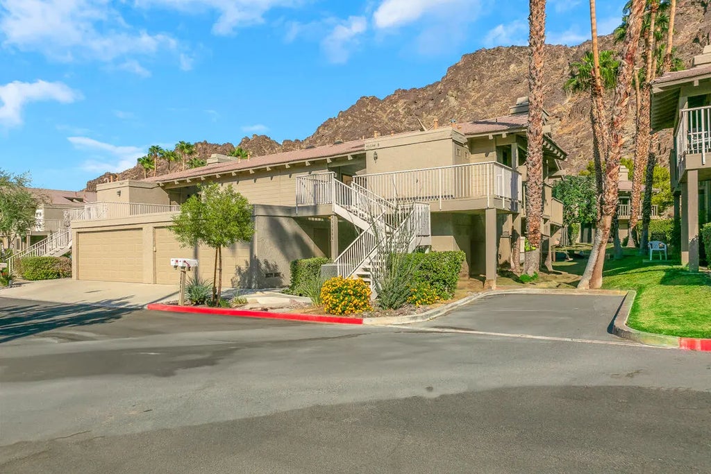 This turnkey Mountain Cove condominium offers breathtaking mountain views and is available to lease immediately. Recently remodeled, the lower level unit is move-in ready, providing a luxurious and comfortable living space. The kitchen features grey cabinetry, stainless steel appliances, stunning quartz counters and and backsplash. These elegant finishes create a modern and sophisticated space, perfect for entertaining guests. The primary bedroom includes a spacious walk-in closet. The primary bath has been tastefully remodeled with a walk-in shower and double sink vanity. The home is in fantastic condition. The light and bright tones create a peaceful and complementary ambiance. The nearby pool is quiet and easily accessible, with plenty of parking for visitors. The patios offer stunning mountain views, while the surrounding glass brings in ample light and integrates the outdoors with the interior space. With plenty of cabinets and closets for storage, this condo is a must-see for anyone seeking a beautiful, spacious, and unique home. Overall, this property is the perfect choice for those looking for high-end living in the desert.