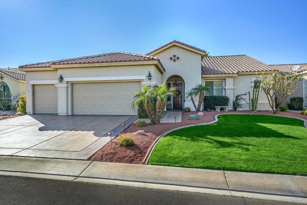 Take advantage of ''a walk in the park'' right outside your own private patio that has a Multi-Million Dollar unobstructed view of the San Jacinto Mountains and Santa Rosa mountains and Chocolate Shadow Mountains. Unwind and relax while viewing the lake from your own 'bubbling fountain' in your lovely landscaped backyard. The interior: Perfect Guest Privacy having separate Master Suite & Jack n' Jill suites on each end of the house. Beautiful home with many upgrades: Concrete extension of patio, Patio Sidewalk on backyard side of house, Patio Shade Structure, Epoxy Patio, Epoxy Walks, Epoxy Driveway & Epoxy Garage floor. Plantation Shutters throughout. NEWER matching Stainless Steel Appliances (Refrigerator, Oven, Microwave, and Dishwasher). Replaced developer Kitchen Granite with beautiful White Quartz Countertops and white Tile Splash-Board. CUSTOM Frosted Etched Glass Pantry Door. Replaced Tile floor in Entry & Hallways. NO worries about power outages with Newer HVAC and GENERAC GENERATOR. Split A/C in garage. ALL TOILETS replaced to TALL SEATS. Front and backyard landscape Lighting with backyard water feature. Drop Down Shades on Patio. Front yard has concrete edging to accentuate meticulous Landscape, This exceptional home boasts 'PRIDE of OWNERSHIP' throughout (inside and out). **Awarded and selected to be in the Desert Garden Society Tour.**
