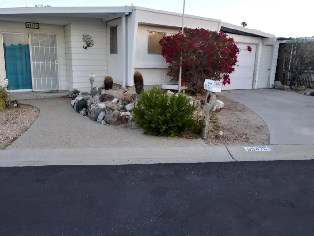DESERT CREST COUNTRY CLUB IS A 55+ COMMUNITY Discover tranquility and comfort in this lovely 2Br 1BA manufactured home with 1,298 sqft of living space. Car garage, Laundry room. Peaceful, well-maintained community with resort-style amenities. Access to natural mineral spa and healing mineral waters. Breathtaking views of the mountains and golf course. Enjoy the quiet surroundings, and a friendly vibrant neighborhood.