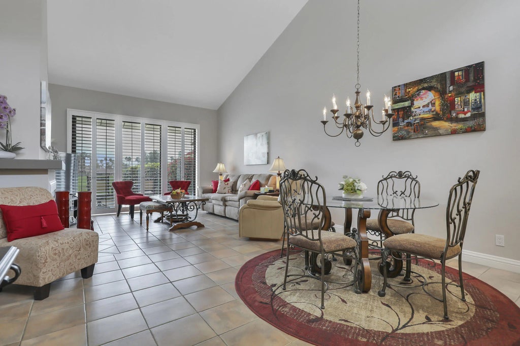 Step into this charming, brilliantly designed 2-bedroom, 2-bathroom condo that seamlessly blends comfort, style, and functionality — a true standout for Best Use of Space! The spacious living room features volume ceilings and a cozy fireplace, flowing effortlessly into the dining area and kitchen. There are two ample ensuite bedrooms that offer privacy and comfort. A usable courtyard acts as an inviting outdoor den, while the tiled rear patio showcases breathtaking double fairway views, south-facing for stunning mountain vistas. Enjoy the convenience of a stackable washer and dryer, also a two-car garage for secure parking and extra storage. Located in the sought-after Lakes Country Club, you'll experience 27 championship holes of golf, a state-of-the-art racquet center and fitness center, a stunning clubhouse, and 44 pools and spas — a community designed for the ultimate resort-style living. This exceptional condo is offered fully furnished and ready to enjoy.