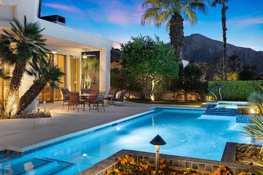 THE CITRUS:VIEWS, VIEWS VIEWS!! Like watching sunsets by your huge pool? This home is for you! Situated on the stunning 18th fairway of The Citrus Club, this 3,306 sq ft home captures huge views of the Santa Rosa Mountains, the Citrus lake, the fairway, *and* the Little San Bernardinos. Light-filled and inviting, the open floor plan is designed for effortless indoor-outdoor living and entertaining. The backyard is a private retreat, complete with a spacious pool, spa, and expansive patio—perfect for relaxation or hosting guests. Inside, you'll find three en suite bedrooms, including a well-separated primary suite offering privacy and comfort. The generous great room, soaring ceilings, and seamless flow make this residence both elegant and functional. As part of The Citrus Club—affiliated with the world-famous La Quinta Resort—residents enjoy lush walking and biking trails, citrus groves, low HOA fees, 24-hour security, and proximity to golf, tennis, fine dining, spas, and boutique shopping. Don't miss this rare opportunity to own a luxury desert retreat in one of La Quinta's most sought-after communities.