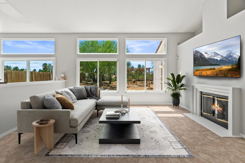 Nothing is missing in this home ...except YOU! Welcome to this Gem in the Desert Hot Springs area above Mission Lakes Blvd. It is truly move-in-ready RIGHT NOW! The home is vacant but we have virtually staged several rooms for your viewing. So many special features - including solar (leased for $120/month with electric bill nearly $0), pre-listing fixits already taken care of by owner, NEW quartz kitchen counter and sink, NEW (2 years) laminate flooring in all bedrooms, TUFF SHED in rear yard, only three-year old YORK heating and A/C unit, bathrooms recently remodeled, and new interior paint all around, all show pride of ownership by this seller. Exquisite desert views throughout with double-pane windows and sliders and mountain views everywhere. Enjoy your morning coffee in the dining room or out on the rear patio. A large gazebo graces the back yard for that family and friends bar-b-que or sitting area. For a great entertainment experience, open all the sliders to the rear yard from kitchen and great room and enjoy the cross breezes as dinner sizzles on the grill. The huge back yard features room for an ADU (buyer to investigate) and existing storage shed already in place. With its own laundry room and full-sized double garage, there is convenience and easy access everywhere in this home. Security features incorporate heavy-duty construction entry screen doors front and rear, inside built-in fire sprinkler system, and alarm system wiring installed. Ceiling fans in every room - Yes, the kitchen, too! all help to reduce energy costs, as does the front outside desert landscape with automatic sprinkler system. And, Tex-Coat exterior paint will preserve this home for many years to come. COME AND TAKE A LOOK NOW!!! You will be glad you did. Buyers with lending will need pre-approval, buyers with all cash will need POF. Inquire about great $15,000 buyer assistance program, $0 down, reduced interest rate. Good credit required.