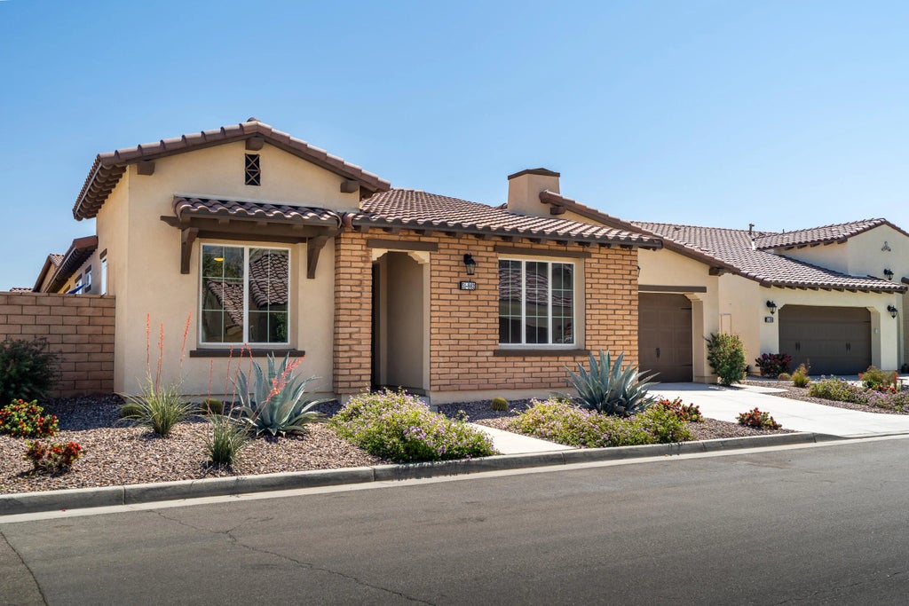 Exquisite single-story in gated Floresta offering 3 beds, 3.5 baths, and 2,497 sq ft of thoughtfully designed living space. This open-concept layout features soaring ceilings, abundant natural light, and a gourmet kitchen with quartz island, walk-in pantry, and modern appliances. The spacious great room and dining area open to a private backyard with mountain views and block fencing for enhanced privacy. $100k of Upgrades include designer cabinetry, custom closet systems, tile flooring, enhanced interior lighting, tankless water heater, and covered patio. Also features a dedicated laundry room with gas hookups, a two-car garage with overhead storage, golf cart garage, and dog run. Enjoy Floresta's resort-style pool, spa, clubhouse, and scenic walking trails. Ideally located across from SilverRock Golf Course and just minutes from Old Town La Quinta. Motivated seller—bring your offer! Assumable VA loan at 2.75% for eligible buyers—a rare opportunity in today's market. Please contact the listing agent for details and private showings.