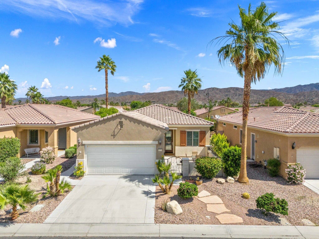Welcome to this beautifully maintained Serrente model, which is offered FURNISHED. This 2-bedroom plus den home features an inviting enclosed courtyard, perfect for morning coffee or evening relaxation. The kitchen is a standout, featuring granite countertops, stainless steel appliances, and upgraded fixtures, including a newer microwave, faucet, and sink. A newer AC system provides year-round comfort. Enjoy outdoor living at its best with a cozy firepit, and a raised cement platform currently accommodating a spa — ideal for relaxation and entertaining. Located in the desirable Sun City Shadow Hills community, where residents enjoy low HOA dues and a wealth of amenities such as pools, tennis and bocce ball courts, two golf courses, and so much more. Don't miss the opportunity to live in one of the most sought-after active adult communities in the area!
