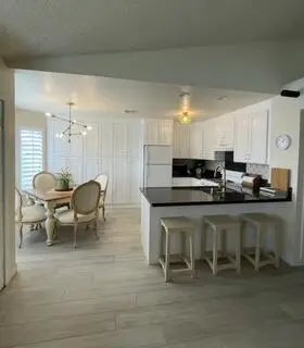 Welcome to this stylish and move in ready 2 bed/ 2 bath condo located in the desirable gated community of Royal Palms. This updated unit offers 925 square feet of comfortable living space with modern finishes and a functional layout. Inside, you'll find a brand new kitchen with generous cabinet space and a sleek breakfast bar—ideal for casual dining or entertaining. New flooring throughout the home adds a fresh, contemporary feel, while the in-unit stackable washer and dryer provide everyday convenience. The spacious primary suite features a large walk-in closet and an en-suite bathroom, offering a private retreat. A second bedroom and full bathroom complete the layout, making the space perfect for a variety of lifestyles. Additional features include carport parking, access to the community pool, clubhouse, and the peace of mind that comes with living in a gated neighborhood. Royal Palms offers a tranquil yet convenient location in the heart of Palm Desert—just minutes from world-class shopping and dining on El Paseo, top golf courses, parks, and scenic hiking trails. $3200 a month. Can be a seasonal or annual lease.
