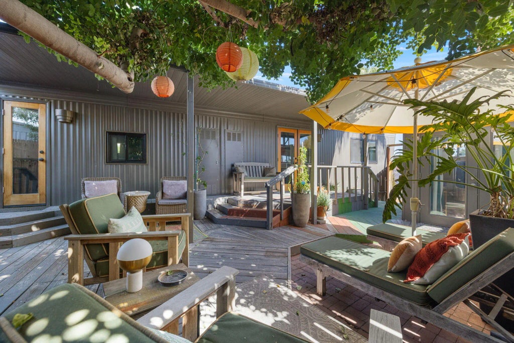 This beautifully renovated 1-bedroom, 1-bath home in the desirable 55+ Ramon Mobile Park is move-in ready and full of charm. Updates include bamboo and tile flooring, fresh paint, a remodeled bathroom, appliances, and French doors that open to a spacious outdoor retreat. The detached studio, currently used as a laundry room, can easily serve as an art studio, workshop, or hobby space. Enjoy a large deck and patio surrounded by mature trees, creating a private oasis perfect for relaxing or entertaining. Fully fenced and gated with great curb appeal, this home is in a prime South Palm Springs location, just minutes from shopping, dining, entertainment, and downtown. Space rent is $886/month. Water, trash, and sewer is a flat fee of $20.50. Metered gas and electricity averaged about $300/month, keeping living expenses very low! The community also offers a heated pool, spa, gym, and clubhouse.