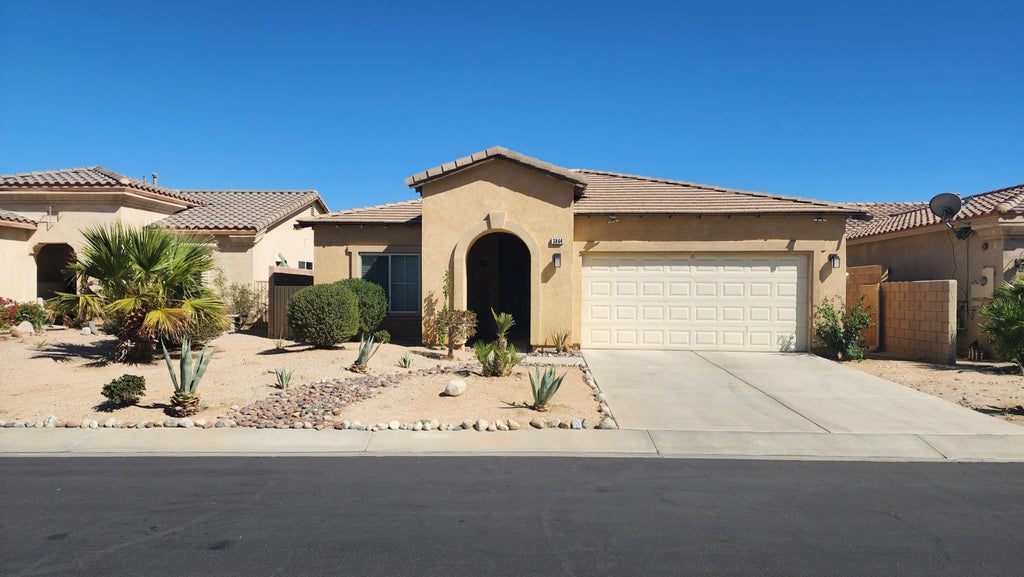 Currently lowest price home in community. 3 BD, Move in ready. Nice open great room floorplan, gas fireplace with modern glass pebbles, large island with bar seating. Kitchen has Stainless steel appliances and large pantry. Backyard has just been reseeded and patio cover restored and painted. Family Community has super low HOA dues with amenities that include 3 pools and spas, tennis courts, basketball court, BBQ area, picnic area, playground, roving security. Located just off Palm Canyon, a short drive to shopping, dining, entertainment, and the PS Tram.