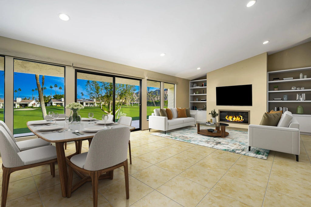 Awe-inspiring views are enjoyed from this beautifully upgraded and exceptionally quiet fairway home. Charming interiors, custom-quality finishes, and breathtaking surroundings combine to create comfort, style, and an ideal setting for entertaining. The private courtyard, framed by lush landscaping, sets the tone for relaxed outdoor living and family gatherings. Inside, a spacious open floor plan promotes interaction and togetherness while maintaining a comfortable sense of space. The kitchen features granite countertops, rich wood cabinetry, tile flooring, and generous pantry storage — perfect for the home chef. Every detail reflects pride of ownership, with thoughtful upgrades and tasteful design choices throughout. The bedrooms offer privacy and peace, serving as quiet retreats for family or guests. The primary suite provides exceptional space and comfort, with a large bath that offers all the amenities of a resort home. Expansive windows fill the home with natural light and showcase sweeping golf course and mountain views, delivering an ever-changing backdrop of beauty and serenity. Whether hosting a dinner party, enjoying the outdoors from the courtyard, or relaxing with family, this home perfectly balances sophistication and warmth. Located in a desirable and well-loved community, this property embodies the best in desert living — blending elegance, comfort, and a welcoming lifestyle.