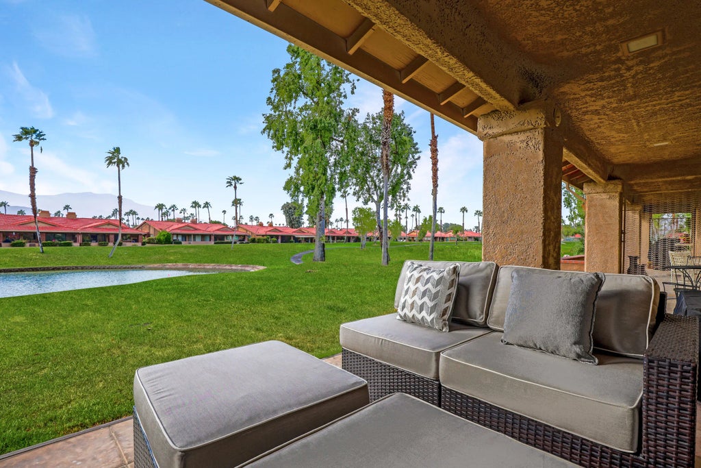 Seasonal Lease available December 2025 - April 2026. This stunning 3-bedroom home captures the essence of desert luxury living with its bright, open-concept design and seamless flow between the dining and living areas, perfect for entertaining. The spacious chef's kitchen, upgraded with new countertops and modern appliances, opens to the great room, creating an inviting space filled with natural light. Step outside to your west-facing patio and take in the lush green fairways, sparkling lake, and breathtaking panoramic mountain views. Every detail has been thoughtfully updated, including new flooring and paint throughout, new carpet in all bedrooms, and two fully remodeled bathrooms. The home features three bedrooms, including a generous primary suite, a welcoming guest room, and a third room currently used as an office. Ideally situated in the heart of Palm Desert, Chaparral Country Club offers resort-style amenities including a clubhouse, restaurant, 18-hole golf course, fitness center, tennis and pickleball courts, and multiple pools and spas. Located near world-class shopping, theaters, the El Paseo fashion district, and top-rated restaurants, this home delivers the best of desert living.