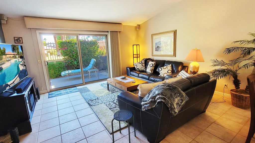 This is the one you have been waiting for! Your Desert Oasis awaits in this beautifully updated and well maintained 2- bedroom, 2-bath turnkey end-unit condo in the exquisite Indian Palms Country Club. Rest easy knowing your condo has been thoughtfully updated with a remodeled primary shower with handicap bar, a new water heater(2025) and newer HVAC system. The unit was also recently re-roofed and painted and windows were replaced with top of the line Milgard windows. Enjoy a front patio with outdoor entertainment bar and barbecue. This is a desired location in the HOA as your back patio offers the sounds of a relaxing waterfall and and lake view from your enclosed patio. Enjoy watching the birds with early morning coffee and lunch in the afternoon shade. The home offers a garage and parking for two vehicles on. With your purchase of 82088 Cochran, you have exclusive deeded access to the Indian Palms Lifestyle Center. New memberships are currently sold out - but with your deed - you are guaranteed a spot in the membership-only clubhouse. The Lifestyle Center offers water aerobics, yoga and stretch classes, bocce ball leagues, pickleball and tennis. In addition, HOA-14 maintains all of your landscaping and provides access to 2 local pools. Indian Palms Country Club features a 27-hole championship golf course and is located minutes from the world-famous Empire Polo Grounds. Come take a tour and experience the stunning resort lifestyle awaiting you. Don't miss your chance to own a piece of paradise — where everyday feels like a vacation!