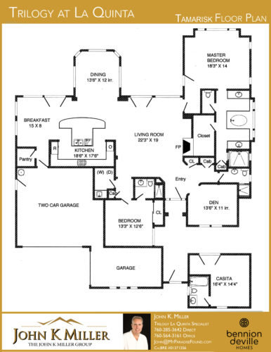 The gracious Tamarisk is designed to accommodate a social lifestyle on either a large or small scale. This home also offers a large family room that is tied to the open kitchen – perfect for more casual occasions. Personal space abounds with a private den off of the entry that can function as a third bedroom. The guest suite is also separated down a hall, making it easy and comfortable to host weekend guests. The master suite is on the opposite side of the home, providing a retreat away from all the activity, and ensuring privacy when you have guests. The best way to describe the Tamarisk is as a symphony of extraordinary spaces that are masterfully arranged. Each room is separate and livable, yet collectively, these highly specialized areas make up a smartly designed whole. The fabulous kitchen has a positively enormous island and the open design makes it easy to visit with guests while dinner is being prepared. The great room is oriented at the rear of the home with windows overlooking the private patio and rear yard. Along with a split three-car garage, the 2,445 square foot Tamarisk has two included patios, creating the ultimate indoor-outdoor experience.